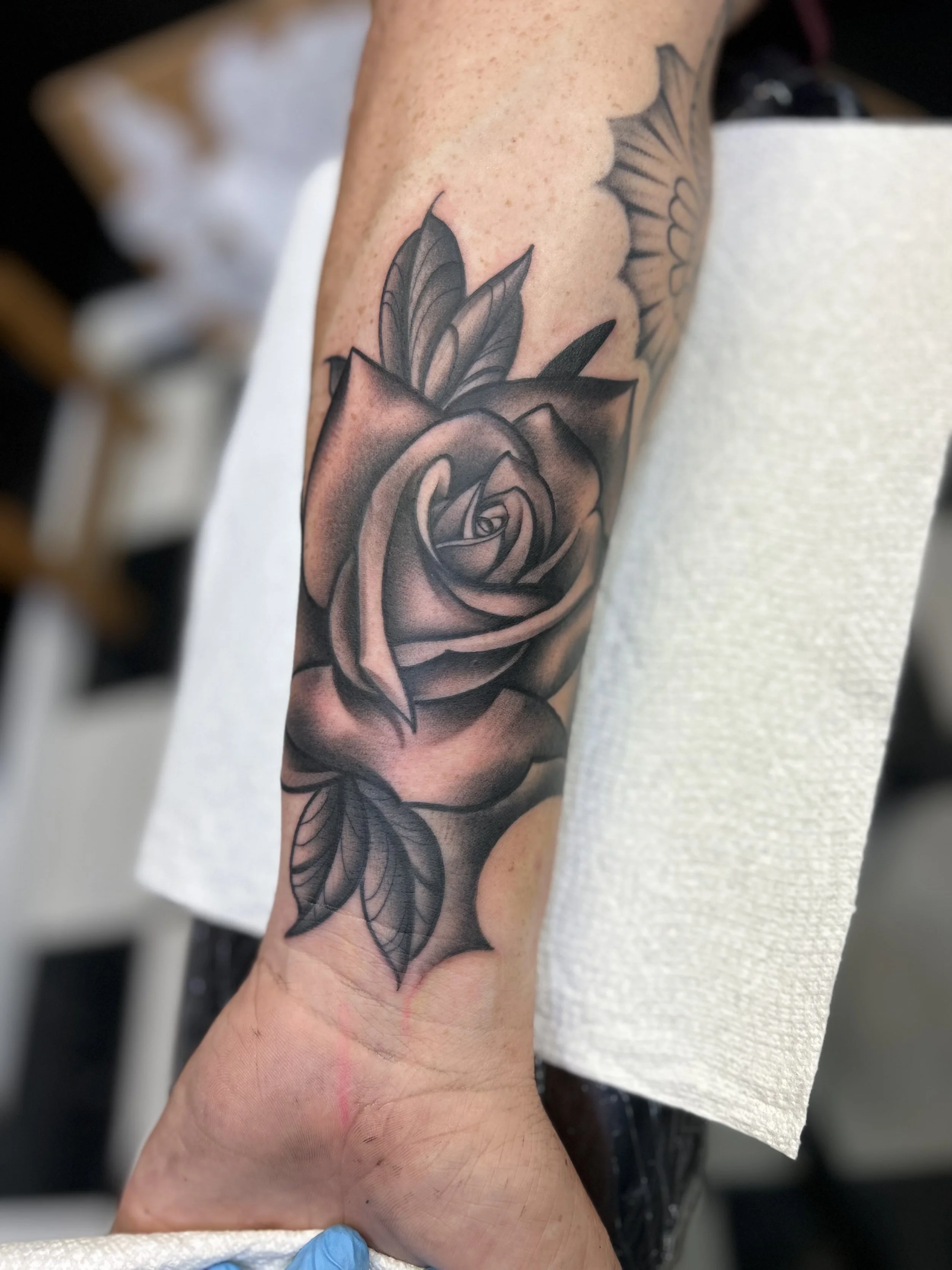 Black-and-gray is a style of tattooing that uses only black ink in varying shades.